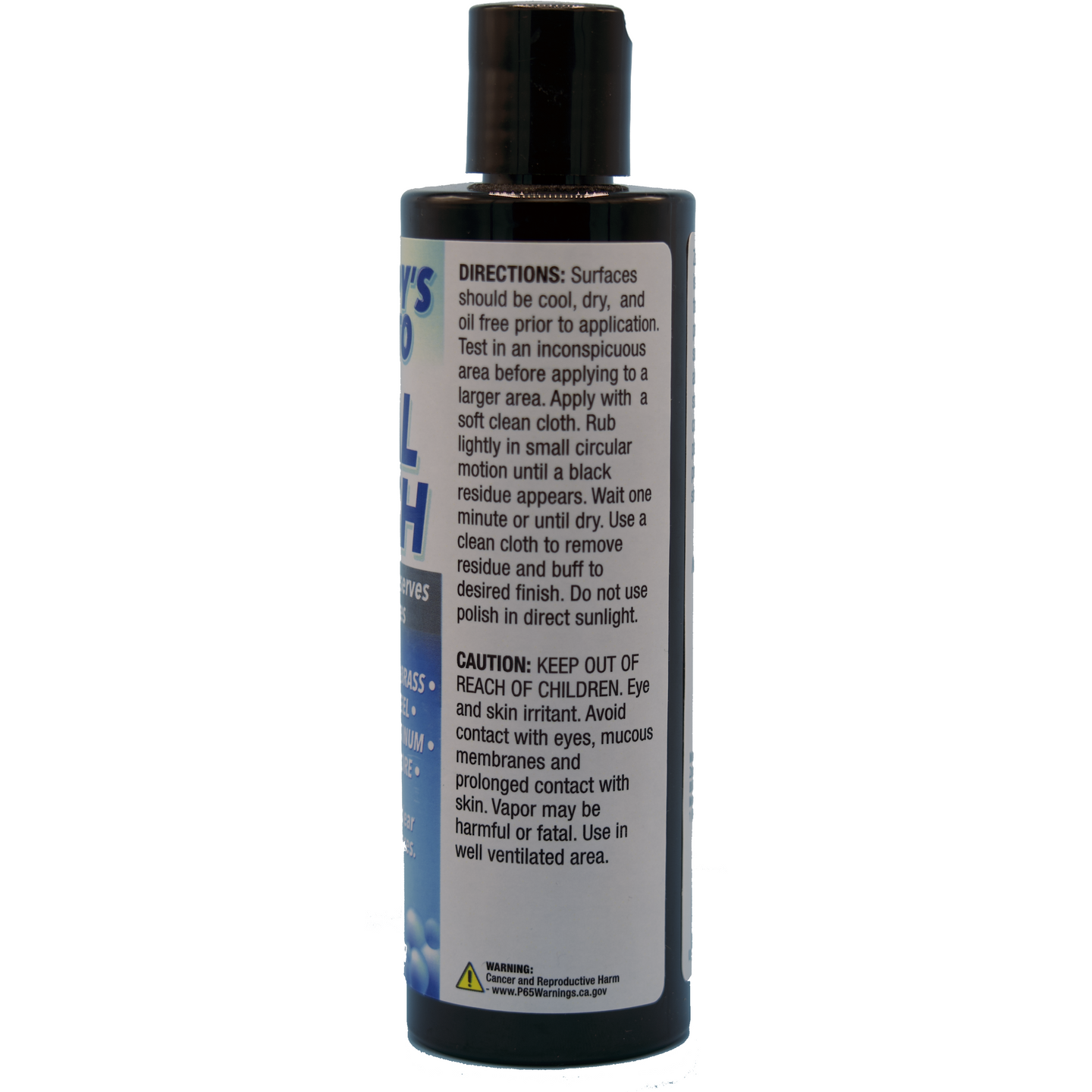 ¯»¿Directions: Surfaces should be cool, dry, and oil-free prior to application. Test in an inconspicuous area before applying it to a larger area. Apply with a soft clean cloth. Rub lightly in a small circular motion until a black residue appears. Wait one minute or until dry. Use a clean cloth to remove residue and buff to the desired finish. Do not use polish in direct sunlight.