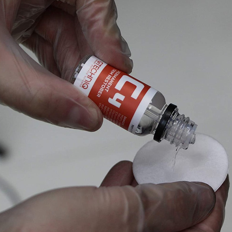 - Once you have spread the product over each piece of trim, gently wipe away residue immediately with an MF1 ZeroR Microfibre Buff Cloth. If your car has heavily textured trim take time to ensure all crevices are covered, and that all residue is also removed from them