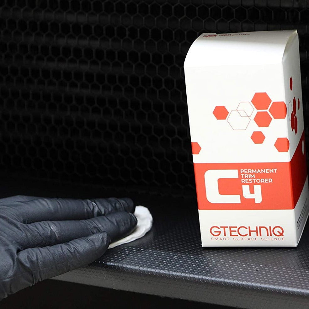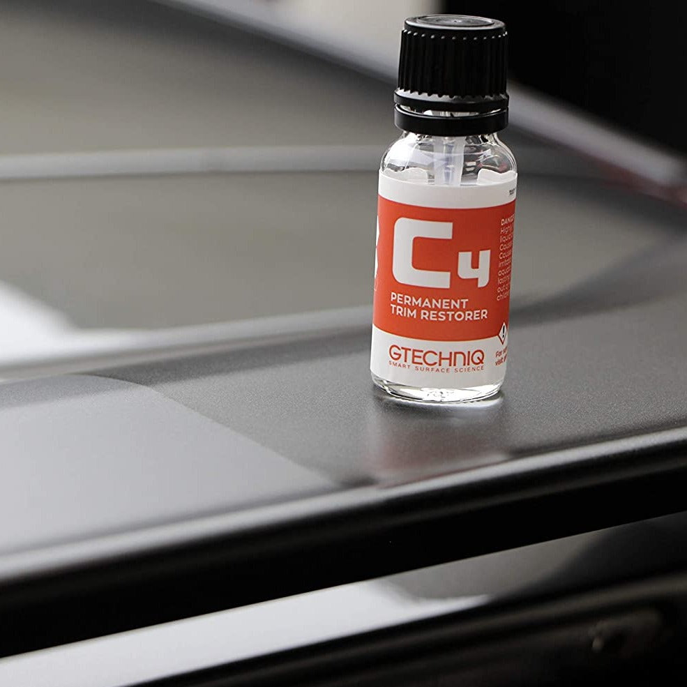 Unlike many trim products on the market, C4 is exceptionally thin (circa 30 nanometers) optically clear film – this means it will not add an unattractive gloss finish to the surface. Instead, it restores all, but the most faded trim to an ‘as new’ condition. It is ideal for new trim, helping to prevent fading.