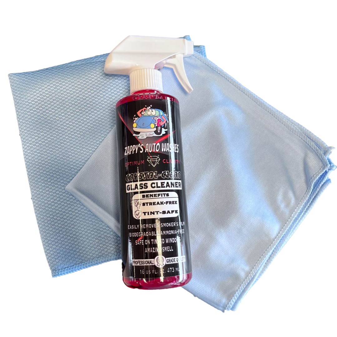 The versatile glass cleaner works on gauges and mirrors. Use on interior and exterior windows and glass. The innovative formula is the choice of detailing professionals and enthusiasts around the world. Simply spray and wipe dirt away for perfect crystal-clear glass. Zappy's Auto Washes Optimum Clarity Crystal-Clear Glass Cleaner is a powerful professional-grade cleaner that removes smoker's film, grime, and dirt, but still gentle enough for tinted windows.